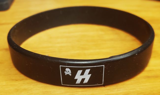 silicone SS gel bracelet with SS bolts and Totenkopf.